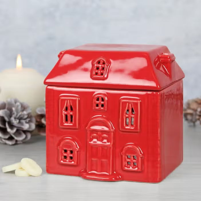 En nydelig aromalampe formet som et lite julehus – perfekt for å skape en varm og koselig julestemning i hjemmet. Lampen er laget i keramikk og har utskårne vinduer som slipper gjennom et mykt, glødende lys når du plasserer et telys inni.