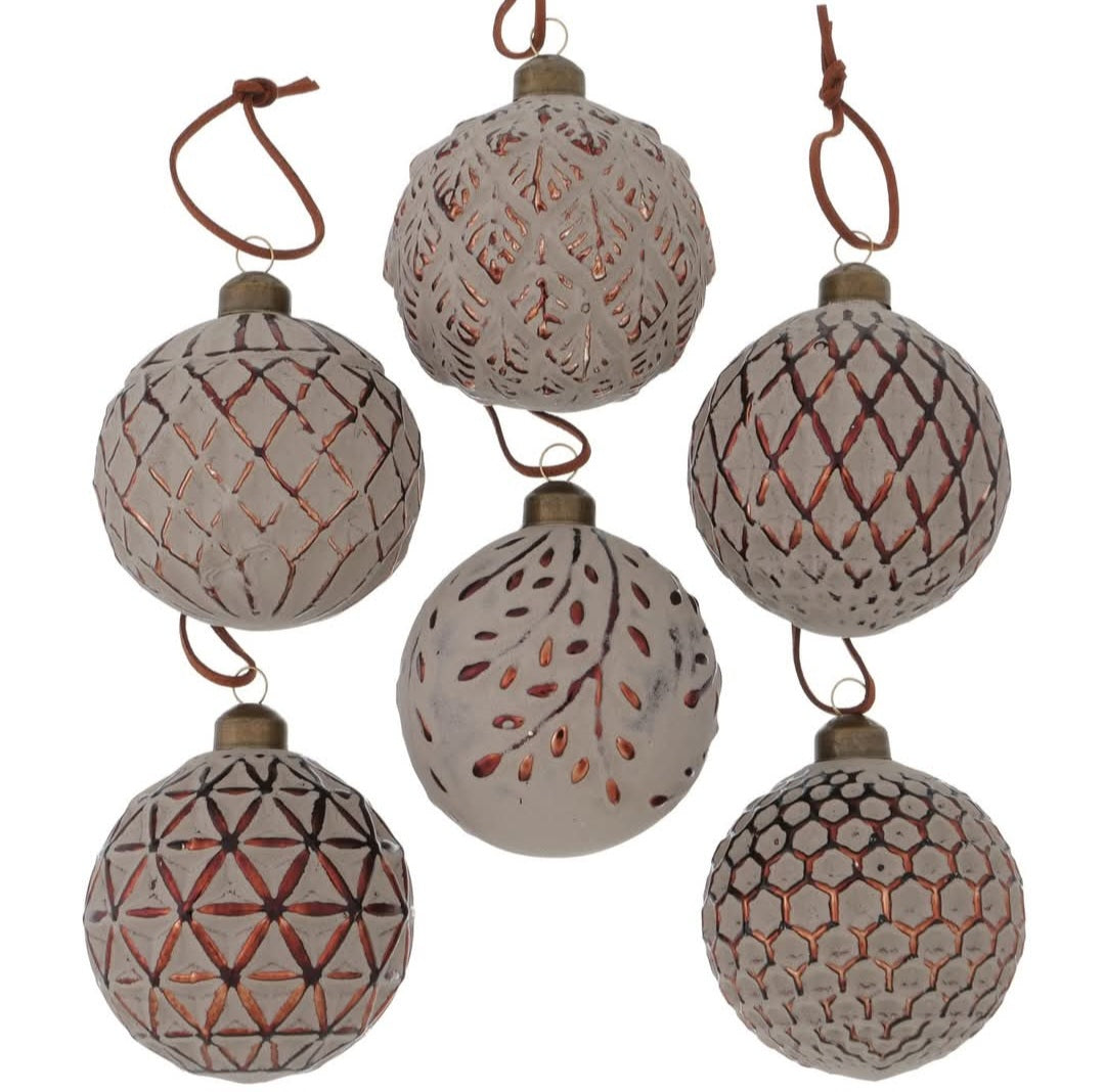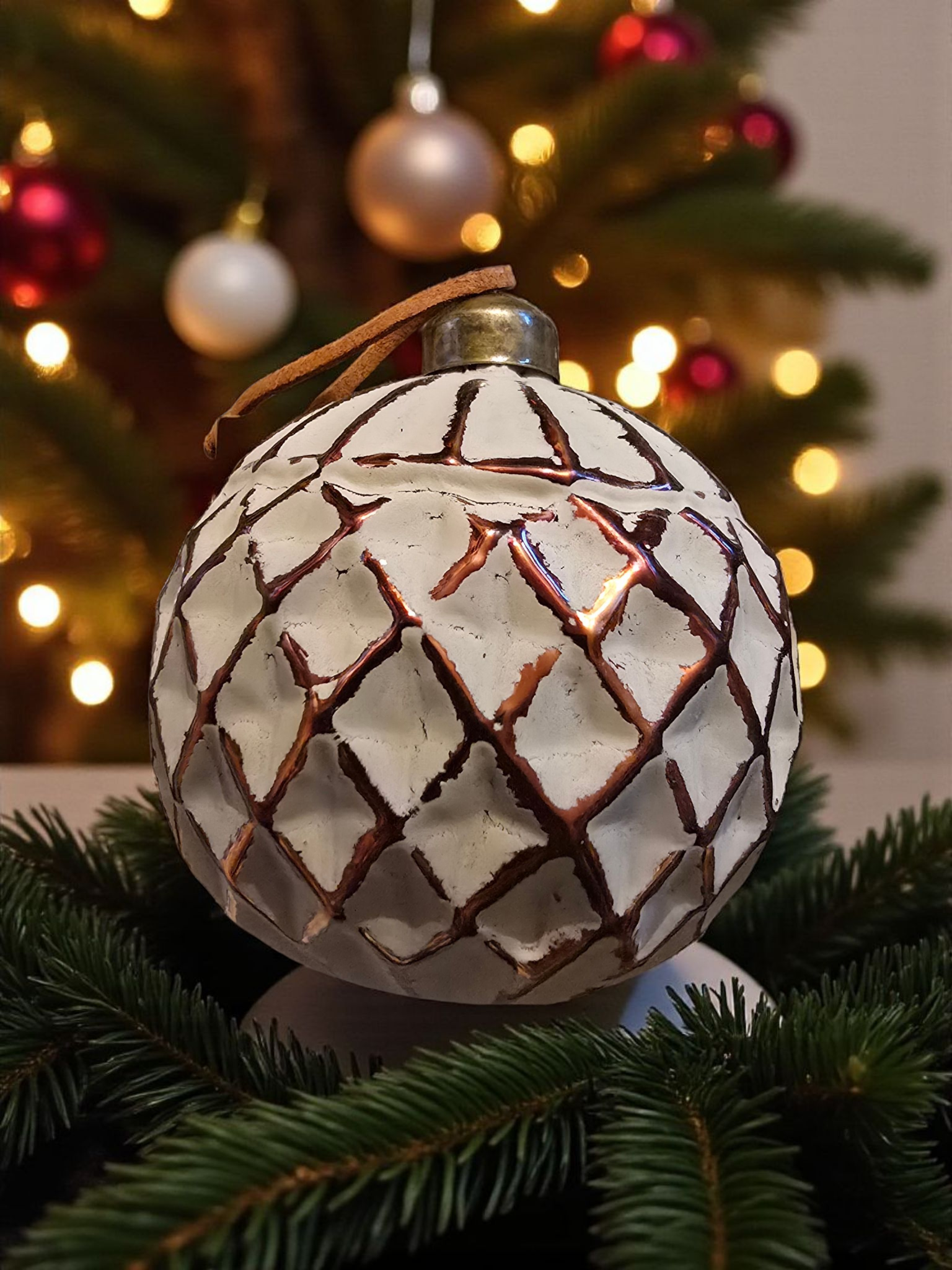 Juletrekule – Kobber med Rutemønster og Kalket Overflate - 8 cm